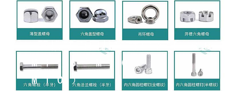 )緊定螺釘主要用于固定兩個(gè)零件之間的相對(duì)位置。特殊用途螺釘例如有吊環(huán)螺釘?shù)裙┑跹b零件用。4. 螺母:帶有內(nèi)螺紋孔,形狀一般呈顯為扁六角柱形,也有呈扁方柱形或扁圓柱形,配合螺栓、螺柱或機(jī)器螺釘,用于緊固連接兩個(gè)零件